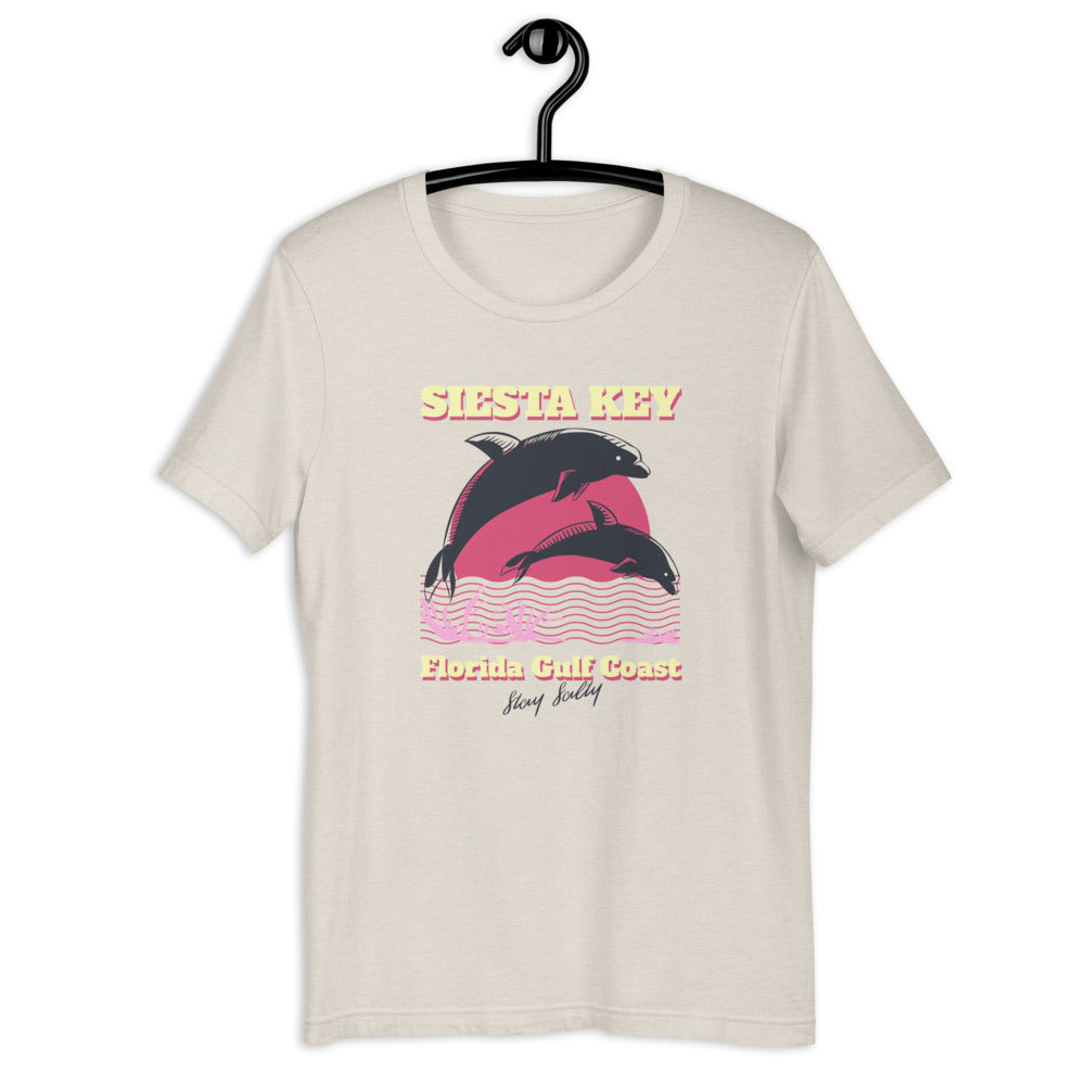 Stay salty at Siesta Key on Florida's Gulf Coast with this comfy dolphin tee! This t-shirt is everything you've dreamed of and more. It feels soft and lightweight, with the right amount of stretch. It's comfortable and flattering for all.